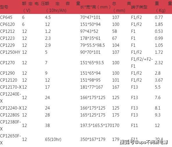 雄韬蓄电池CP长寿命参数