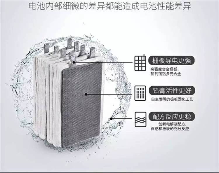 特别隔膜(AGM)牢固吸附电解液使之不流动。电池无论立放或卧放均不会泄露,保证了正常使用。