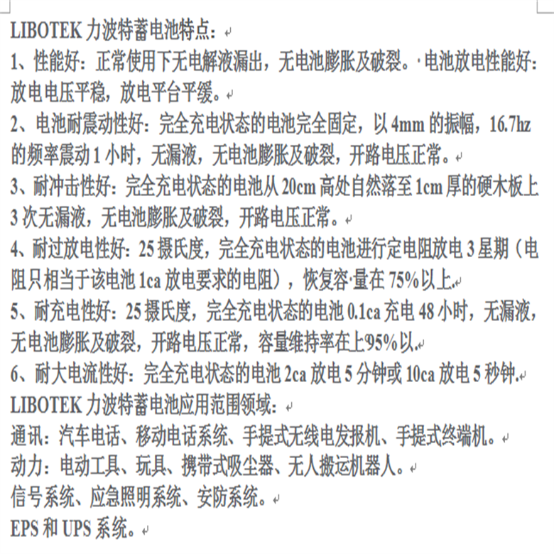 为确保LIBOTEK蓄电池NP150-12始终处于zuijia工作状态,用户在使用过程中应注意以下几点: